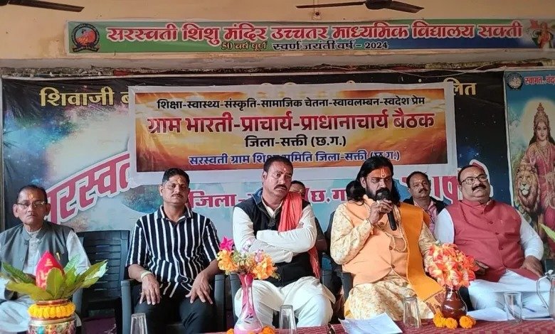 सक्ती – ग्राम भारती योजना के अनुसार सरस्वती ग्राम शिक्षा समिति जिला सक्ती एवं सक्ती जिला के सभी प्राचार्य एवं प्रधानाचार्यों की एक दिवसीय बैठक सरस्वती शिशु मंदिर उच्चतर माध्यमिक विद्यालय सक्ती में संपन्न हुई । बैठक का शुभारंभ भारत माता एवं विद्यादायिनी माता सरस्वती के समक्ष दीप प्रज्वलन कर किया गया। बैठक की अध्यक्षता जिला सक्ती ग्राम भारती के अध्यक्ष आचार्य राजेंद्र महाराज ने किया ।